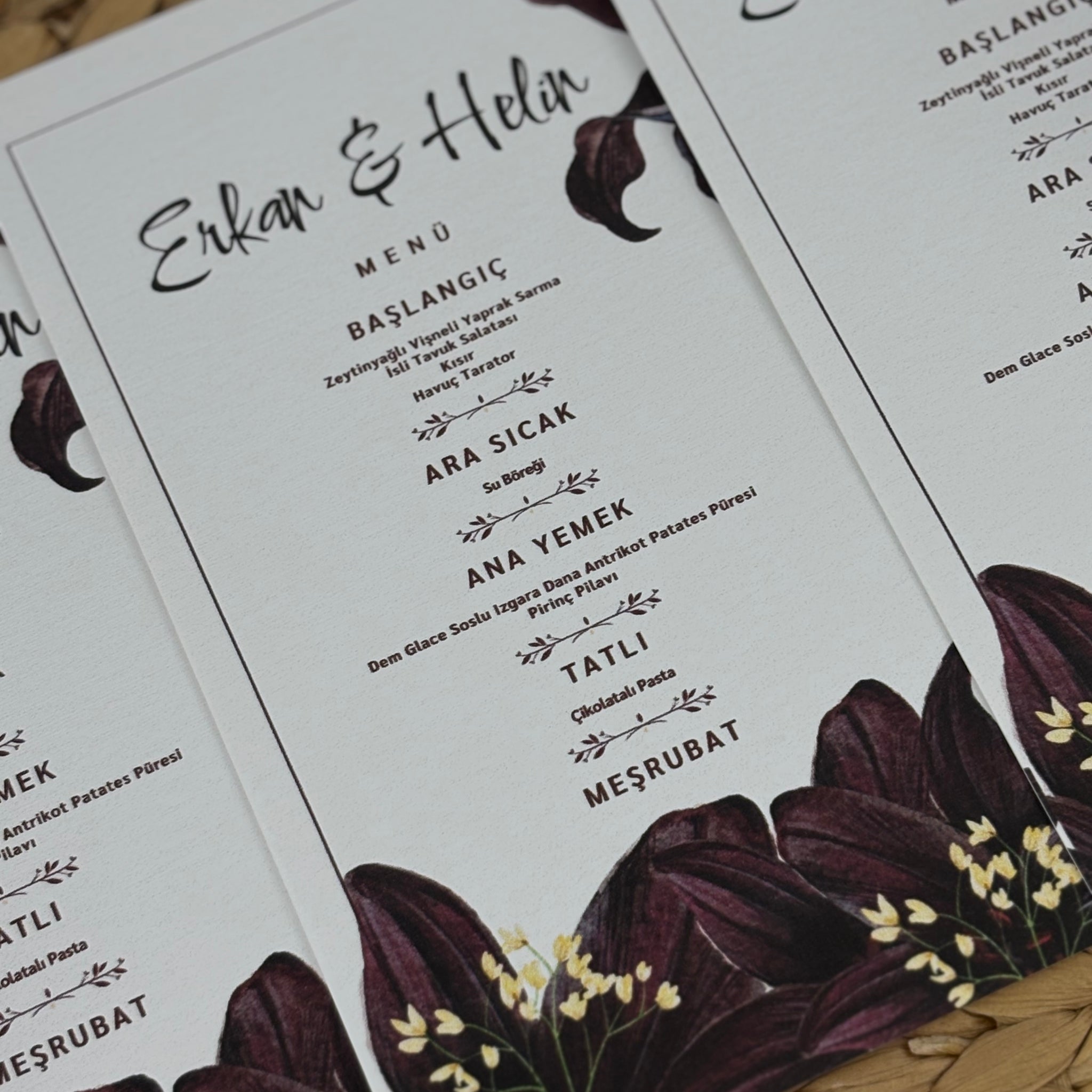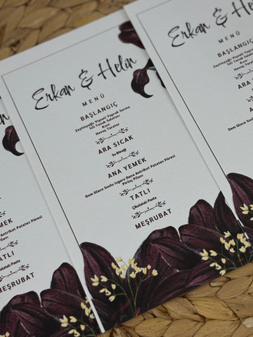 Düğün & Nişan Menü Kartı – Kişiye Özel Tasarım, Masalara Şıklık Katan Menü