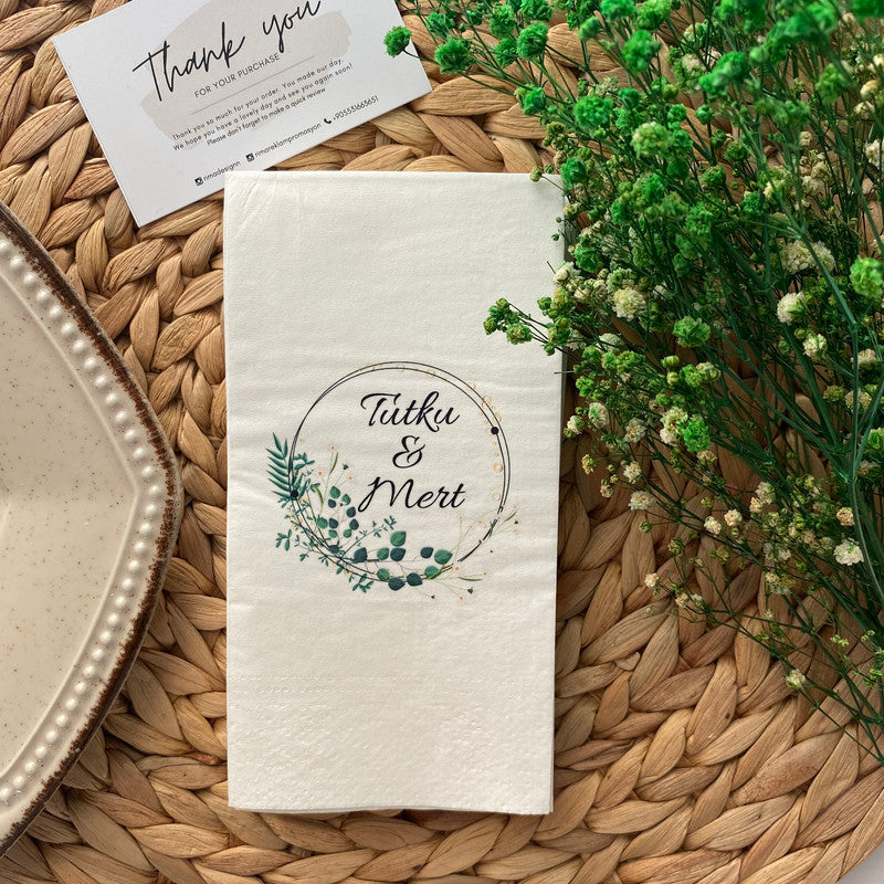 Düğün ve nişanlar için kişiye özel tasarlanmış isimli peçetelerle sunumlarınıza zarafet katın. Lüks ve şık peçetelerimizle özel günlerinizi unutulmaz kılın.