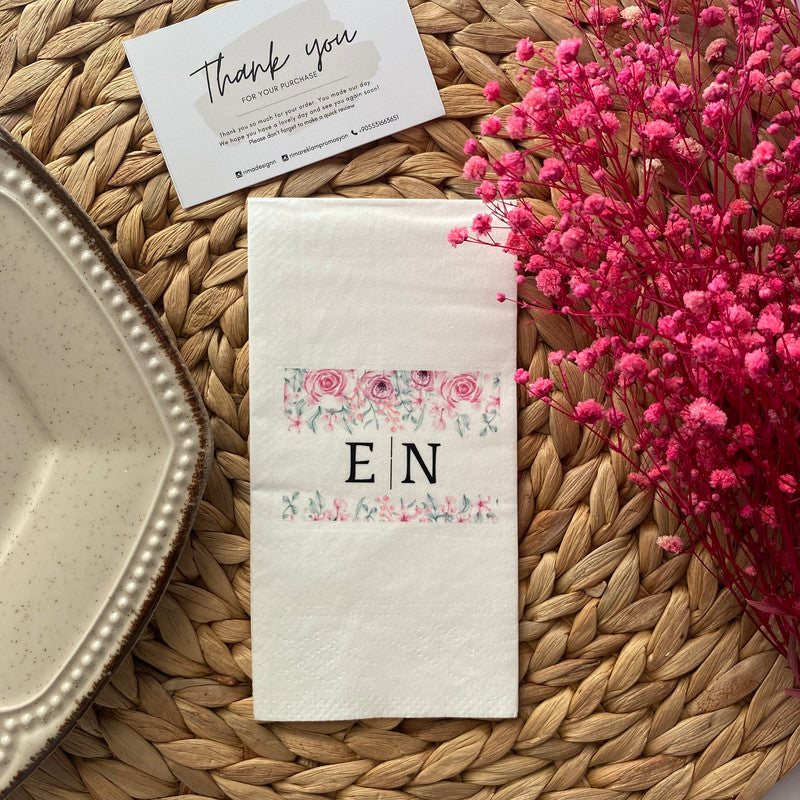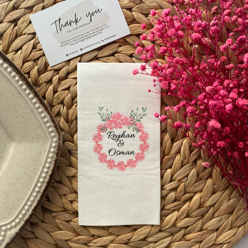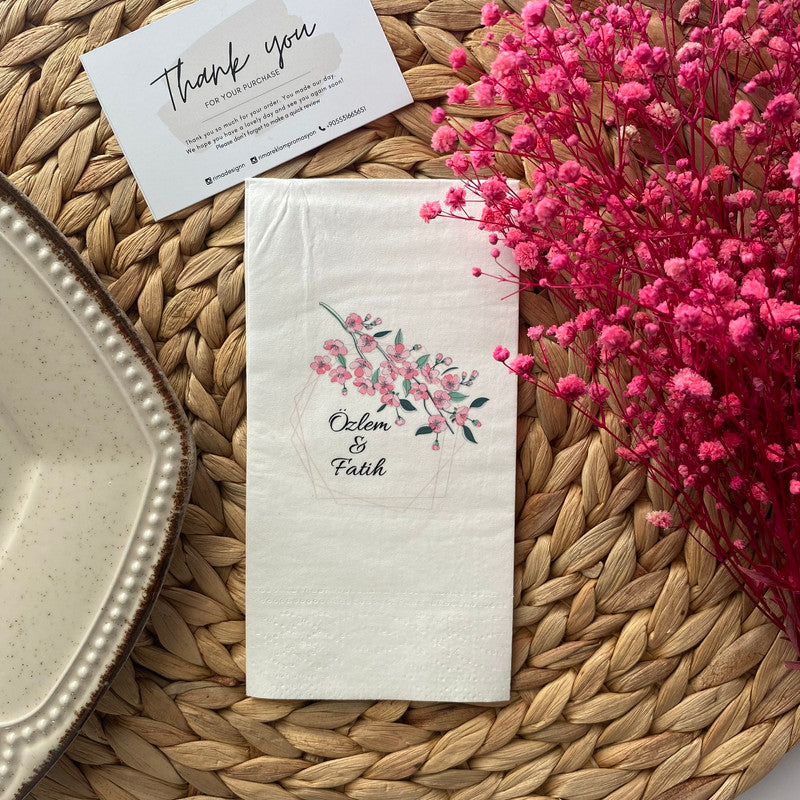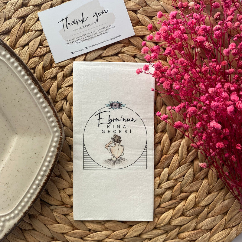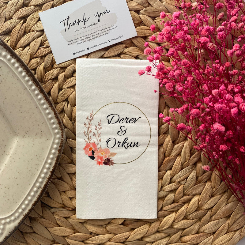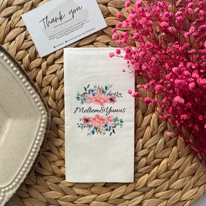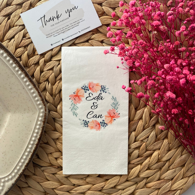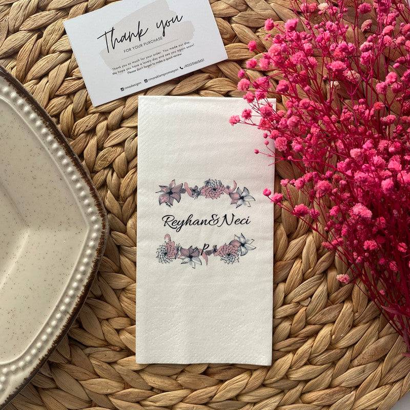 Düğün ve nişanlar için kişiye özel tasarlanmış isimli peçetelerle sunumlarınıza zarafet katın. Lüks ve şık peçetelerimizle özel günlerinizi unutulmaz kılın.