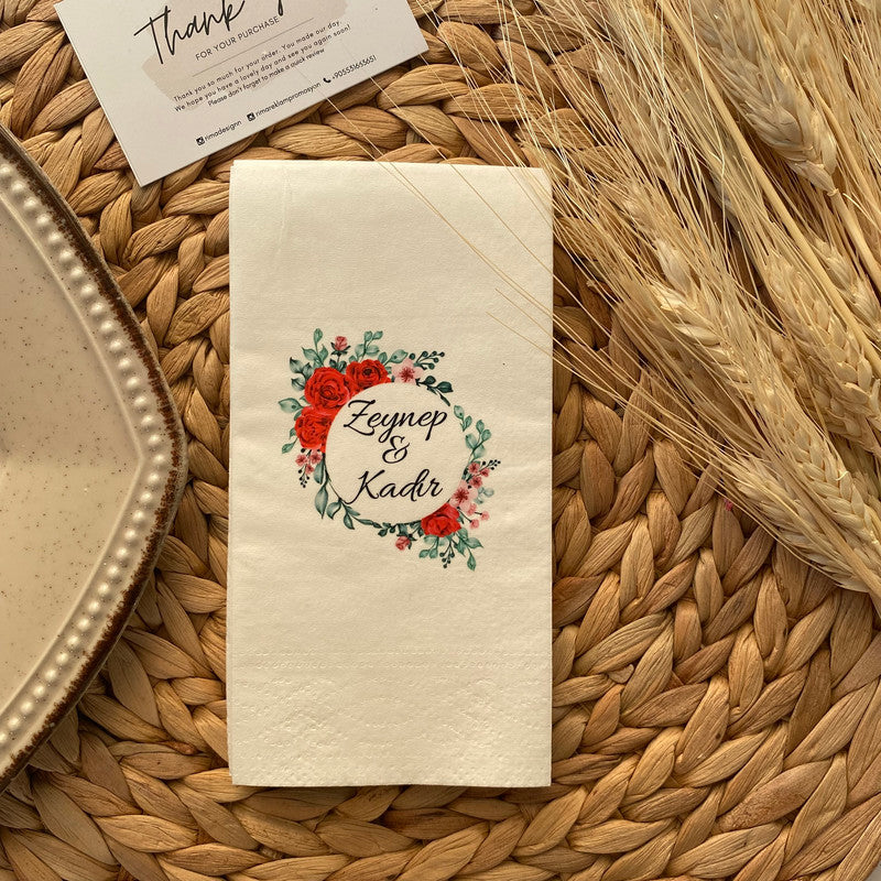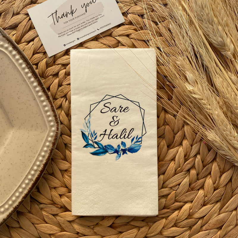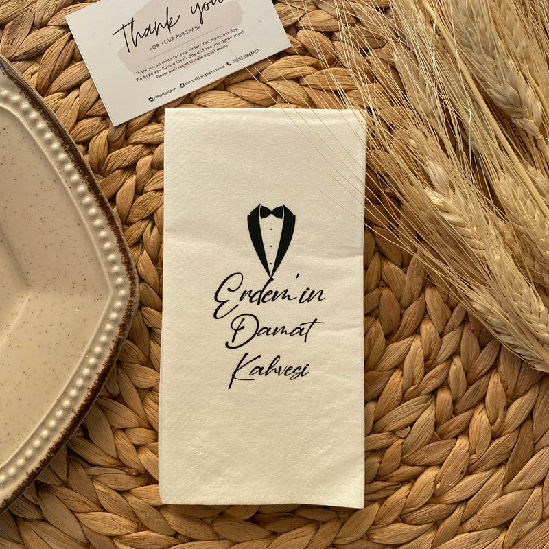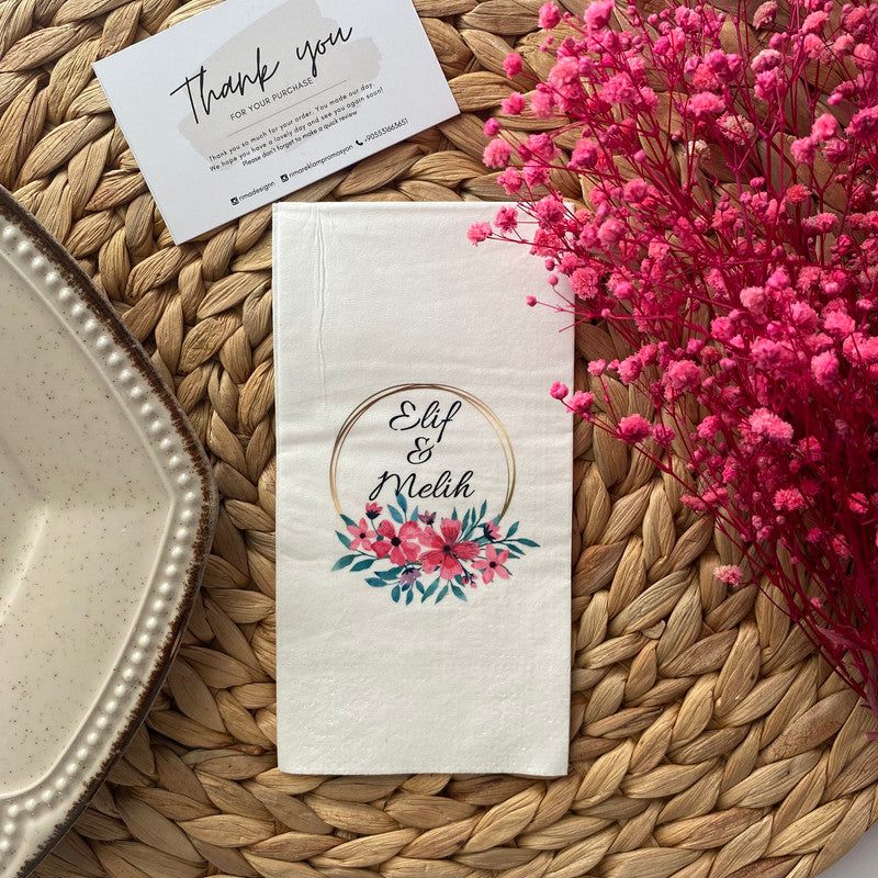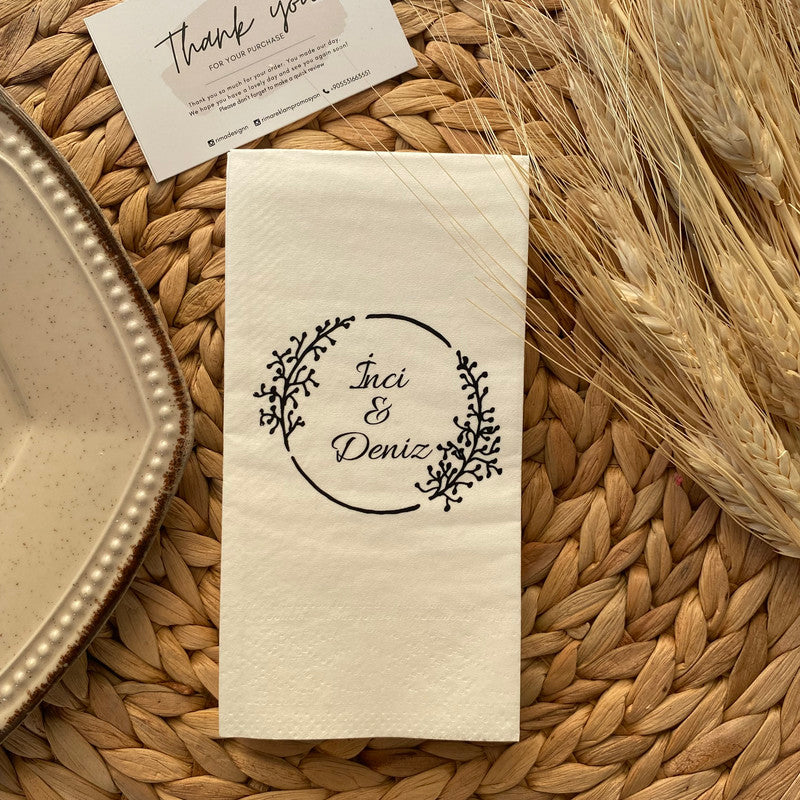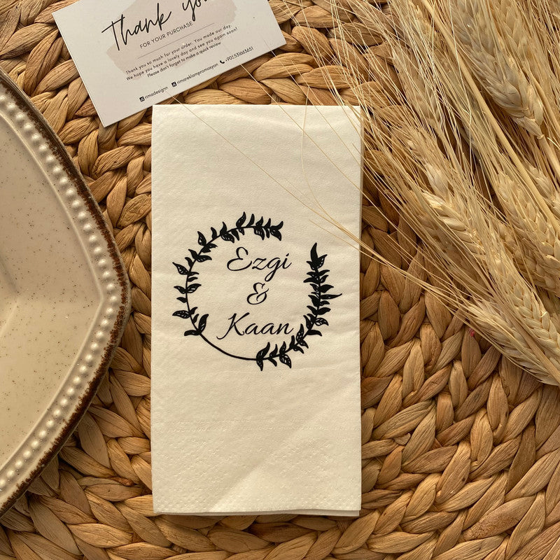 Düğün ve nişanlar için kişiye özel tasarlanmış isimli peçetelerle sunumlarınıza zarafet katın. Lüks ve şık peçetelerimizle özel günlerinizi unutulmaz kılın.