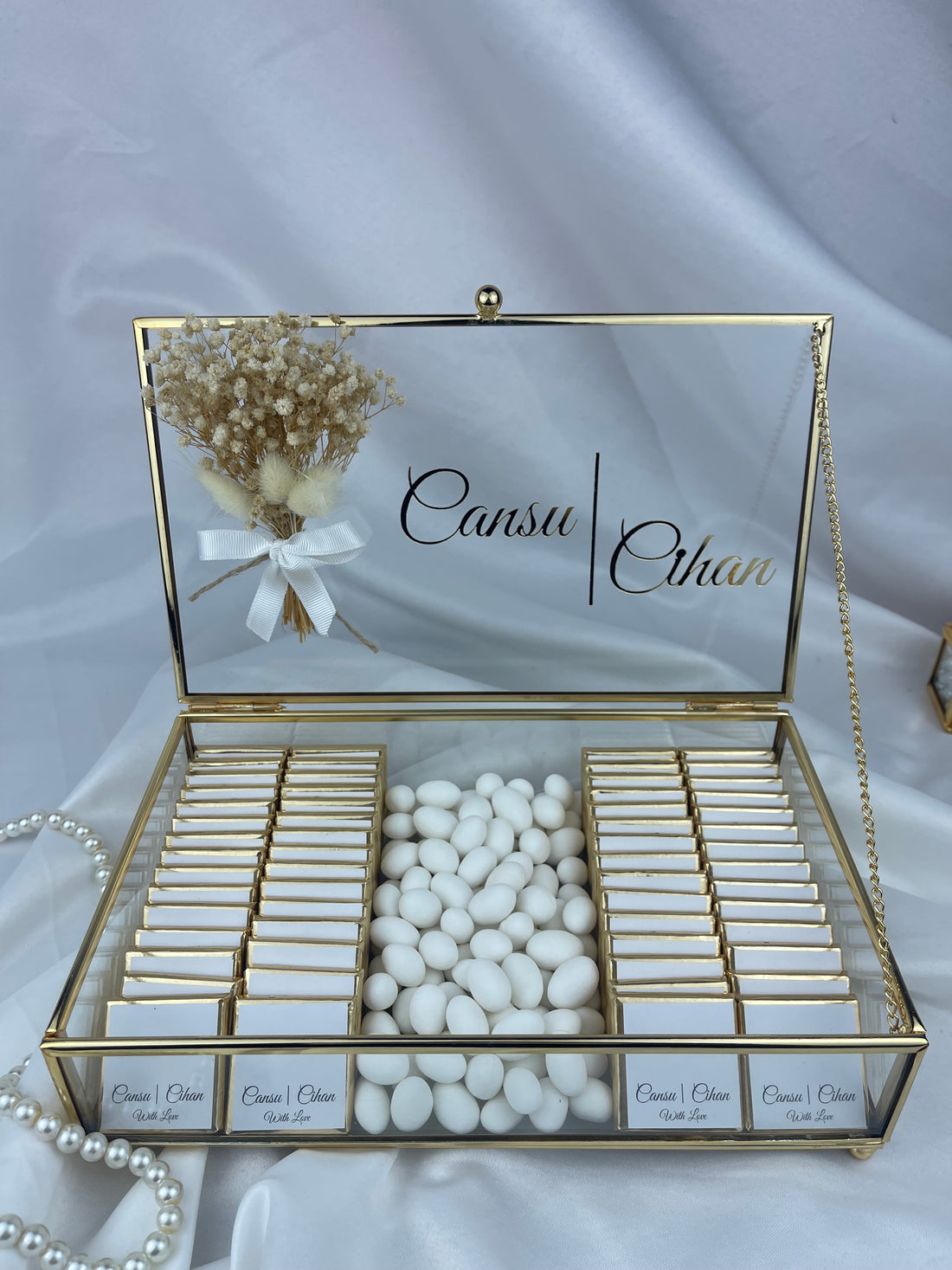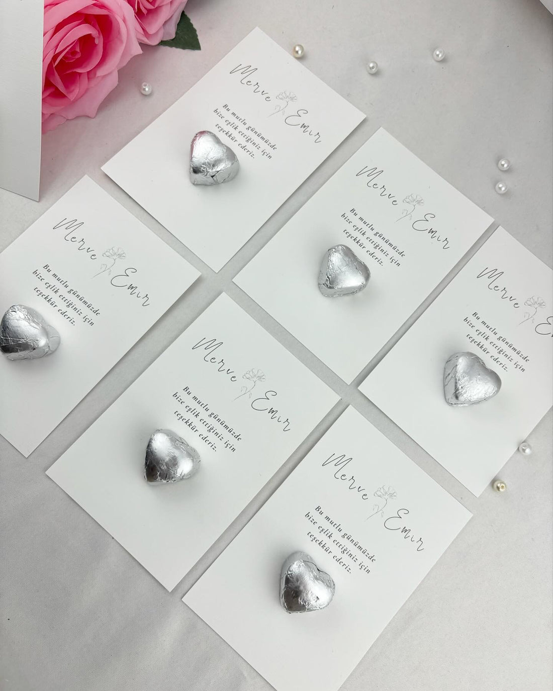 Koleksiyonumuzda neler mi var? Nazar boncuklu epoksi anahtarlıklar, pleksi kaplama madlen çikolata kartları, inci ve tüy detaylı lüks peçeteler ve daha birçok özel tasarım. Misafirlerinize anlamlı ve şık sürprizler sunmanın en güzel yolunu burada bulabilirsiniz. Özel dokulu kağıtlardan, şık cam kutulara, zarif kurdele ve çiçek süslemelerine kadar her detay, sizin ve misafirlerinizin özel hissetmesi için düşünüldü.