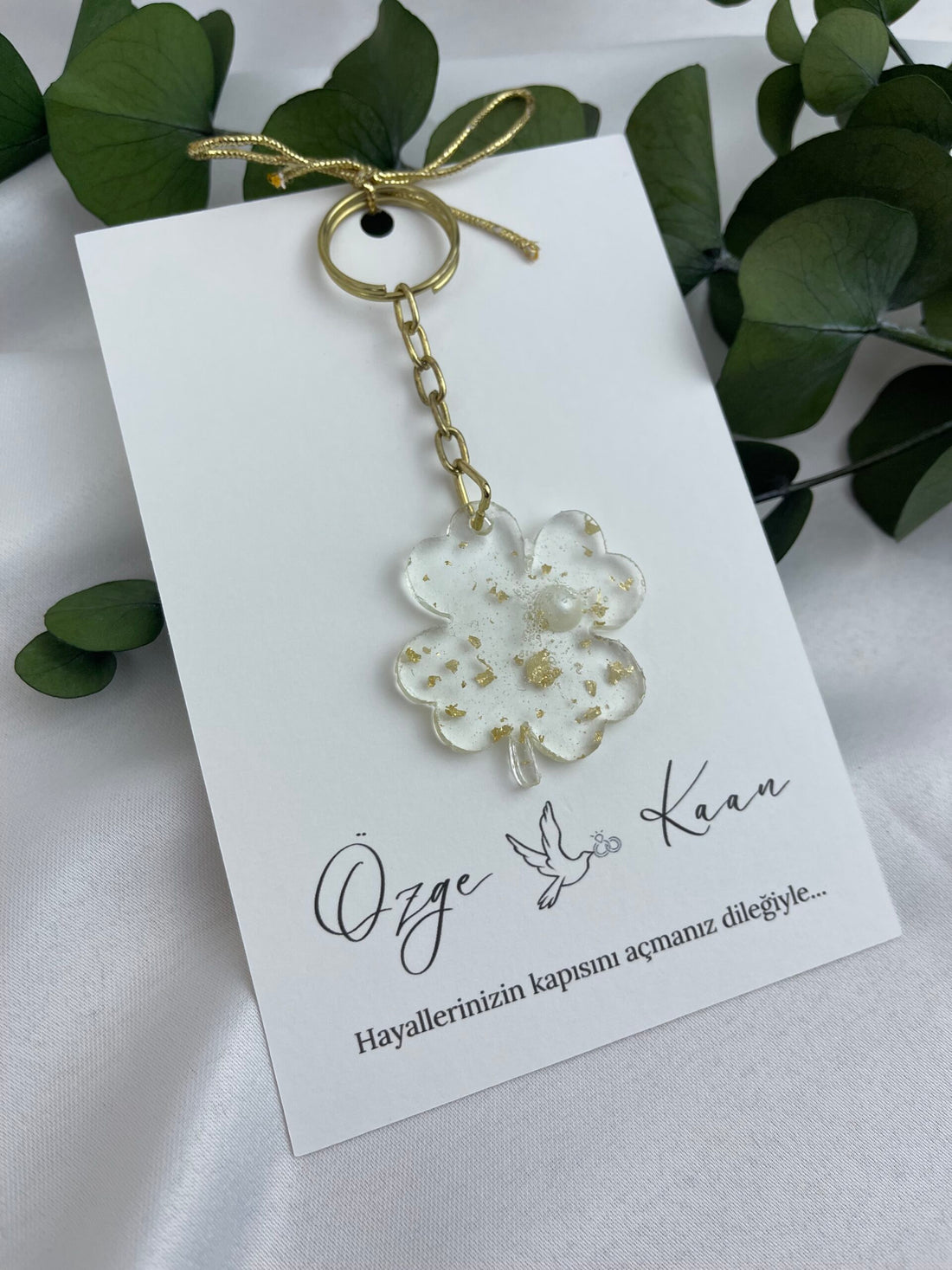 Epoksi Yonca Anahtarlık - Nişan ve Söz Hediyelikleri