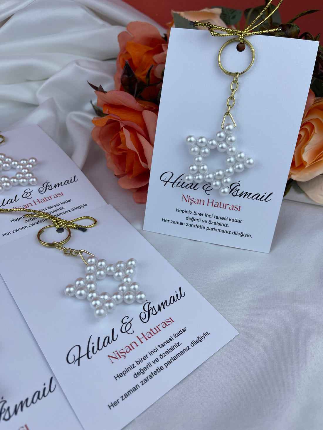 Özel İncili Yıldız Anahtarlık Söz ve Nişan Hediyelikleri
