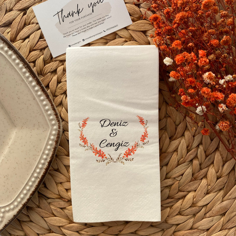 Verleihen Sie Ihren Präsentationen Eleganz mit personalisierten, personalisierten Servietten für Hochzeiten und Verlobungen. Machen Sie Ihre besonderen Anlässe mit unseren luxuriösen und stilvollen Servietten unvergesslich.