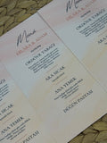Her özel gün sofrasına değer katan menü kartları, şık tasarımıyla yemeklerinizi estetik bir biçimde sunar. Düğün, nişan ve davetler için özel hazırlanır.