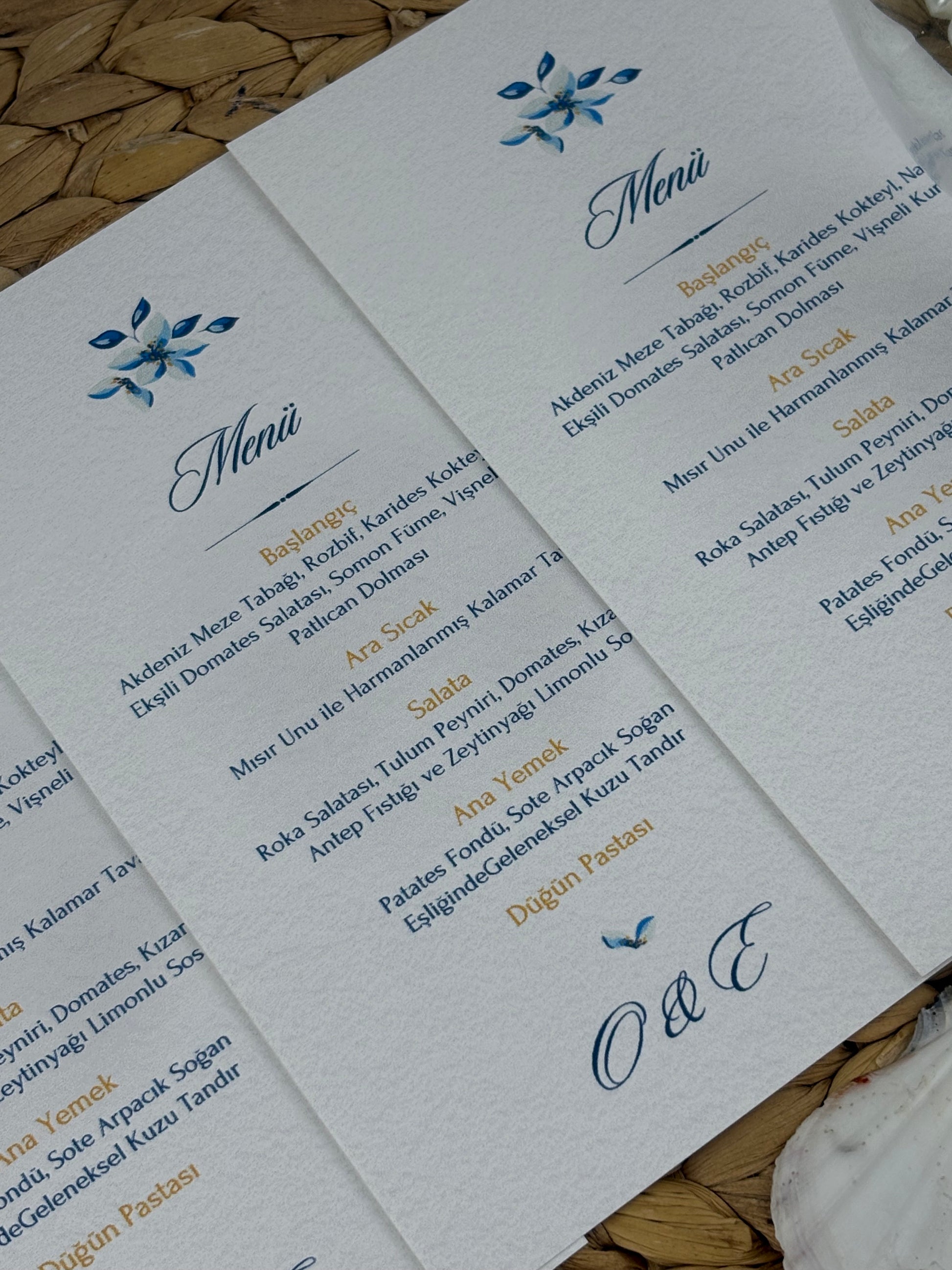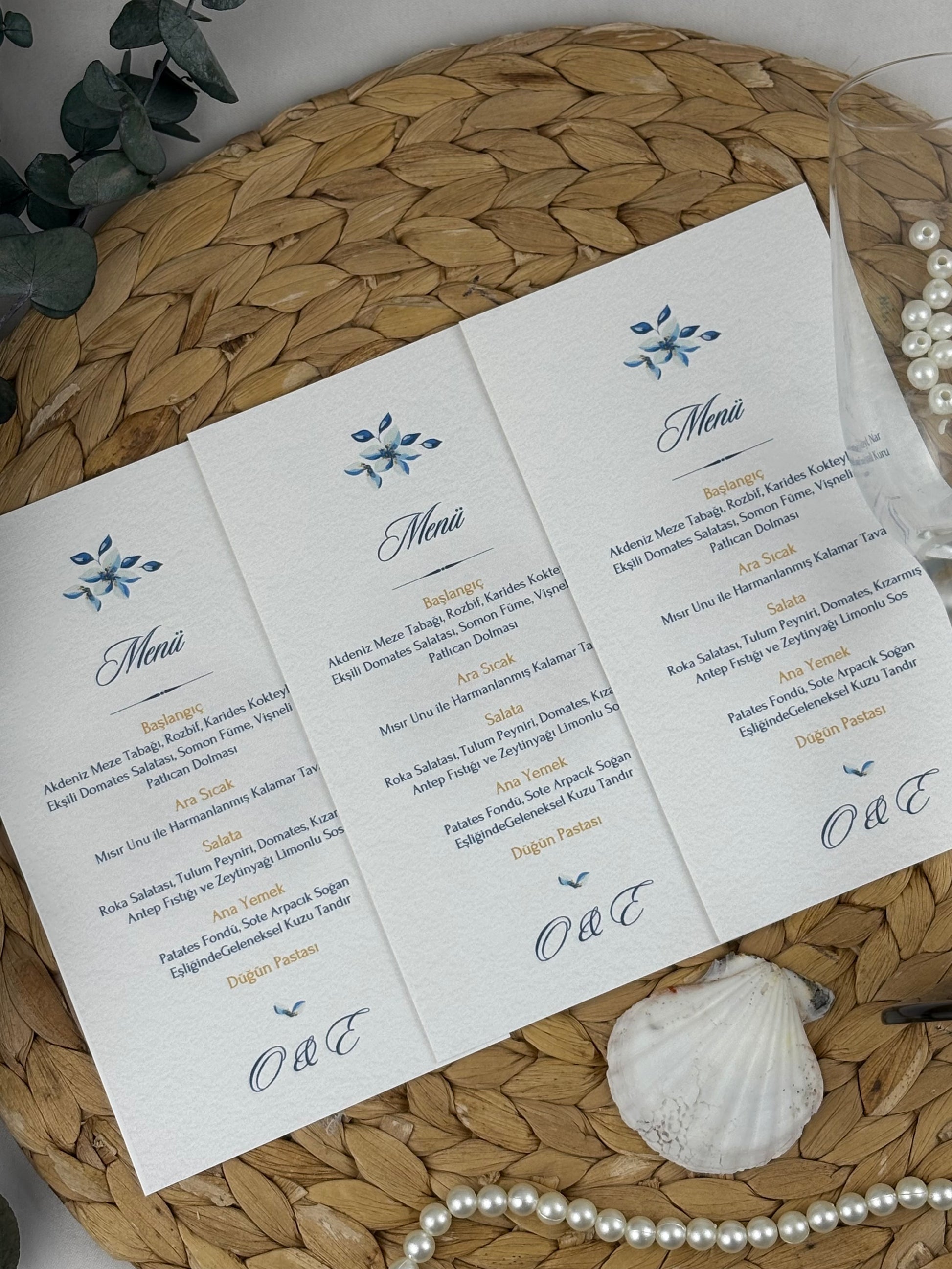 Özel Tasarım Menü Kartı – 8x18 cm, Amerikan Bristol Kağıt, Düğün Davetiyesi Tamamlayıcı