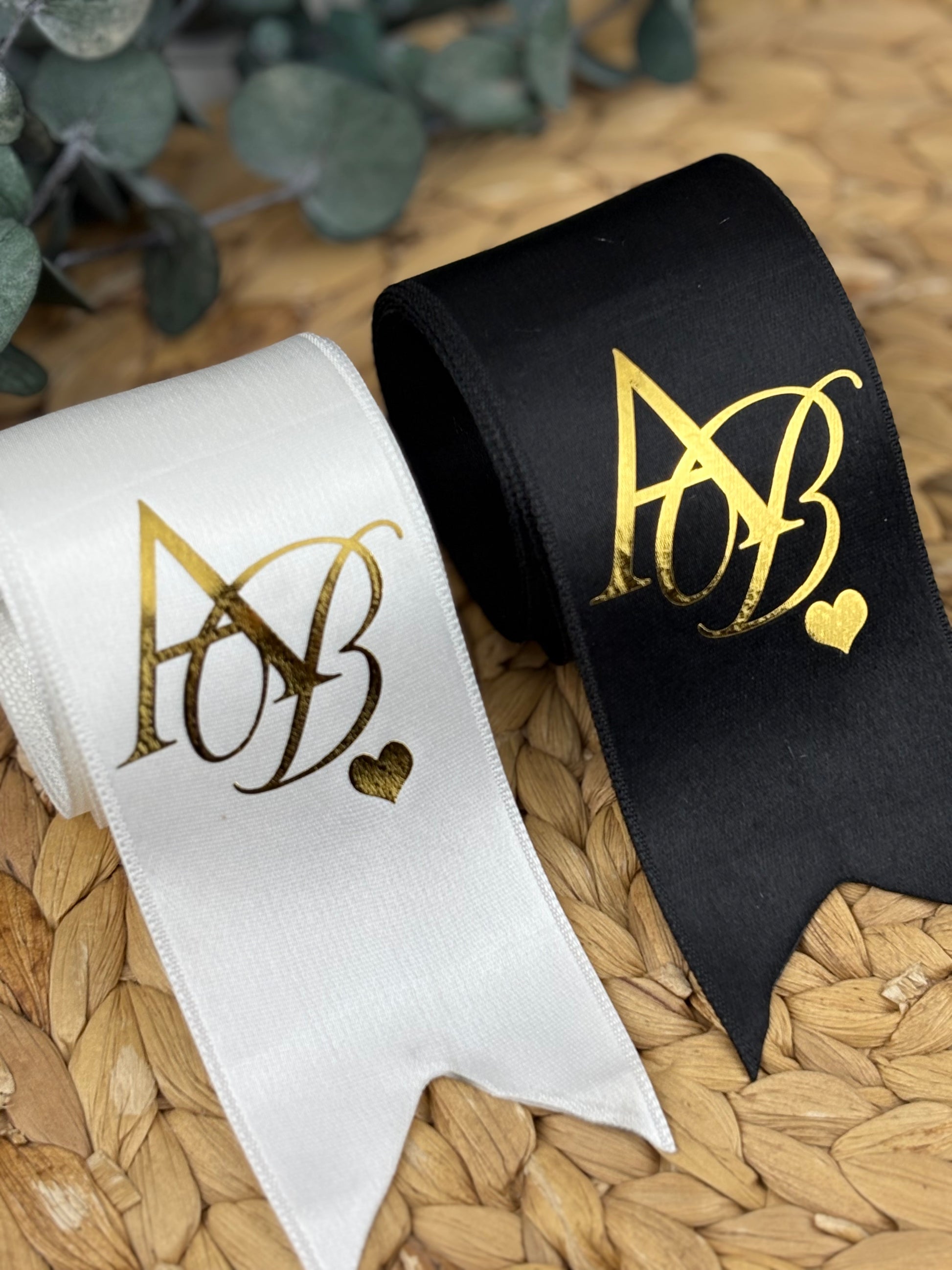 Takı Kurdelesi - 6 cm En, 2 Metre Uzunlukta, Siyah ve Beyaz Renk, 2 Adet Kişiye Özel